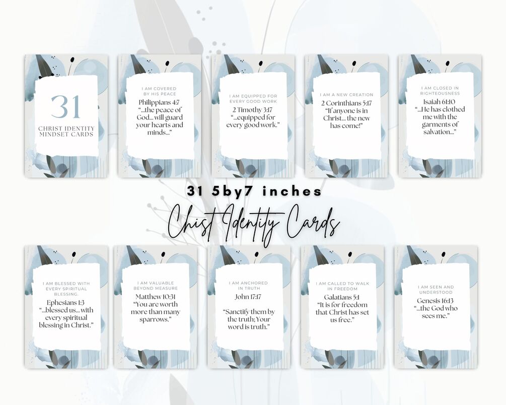 Discover who you are in Christ with this beautifully designed set of 31 Christ Identity Cards (5x7 inches).